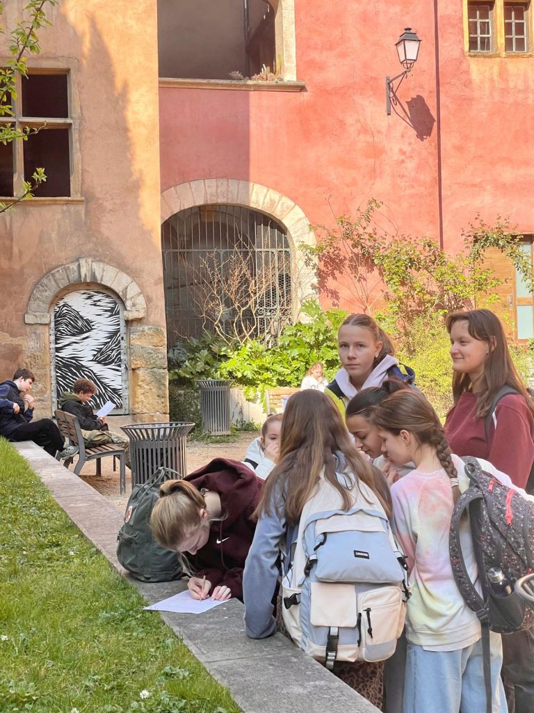 Dann sind wir zur Tram gegangen und sind nach Vieux Lyon gefahren, wo wir dann an der Kathedrale in Gruppen eingeteilt wurden und dann die Stadtrallye angefangen wurde.