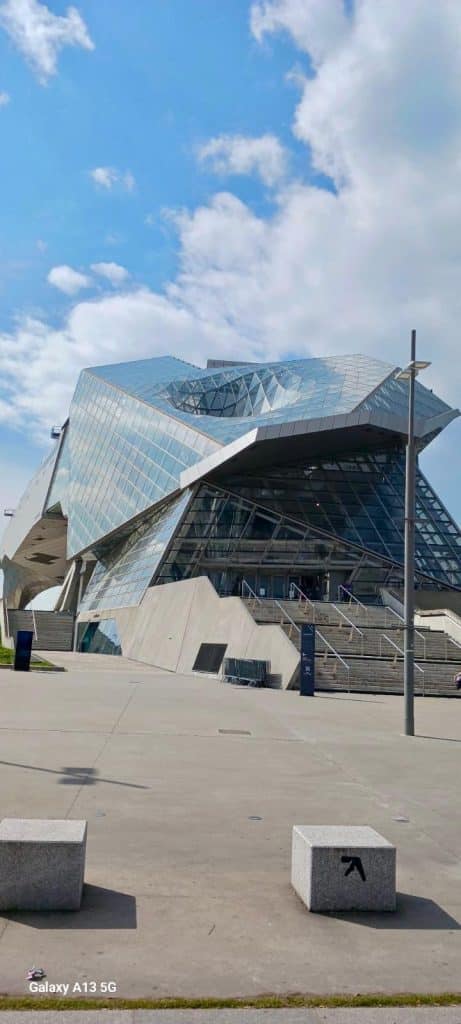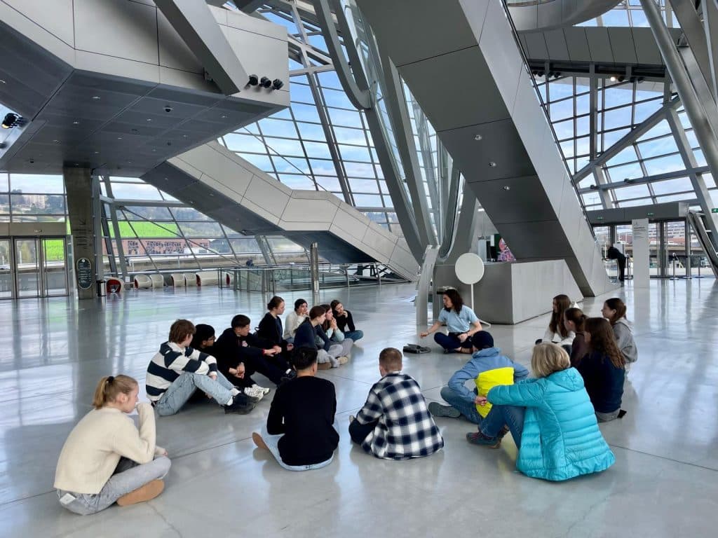 Heute, am letzen Tag in Frankreich, waren wir im Musée des Confluences. Wir haben uns um 8 Uhr morgens am Collège Pablo Picasso getroffen. Eine halbe Stunde später sind wir aufgebrochen zum Musée de Confluences. Wir sind mit der Straßenbahn direkt zum Musée gefahren. Das Musée war sehr interessant: Es ist 12 Jahre alt und hat einen sehr interessanten Baustil (s. Foto).Es befindet sich direkt da wo die beiden Flüsse „la Saône“ und „le Rhône“ zusammenfließen, daher der Name „Musée de Confluences“.