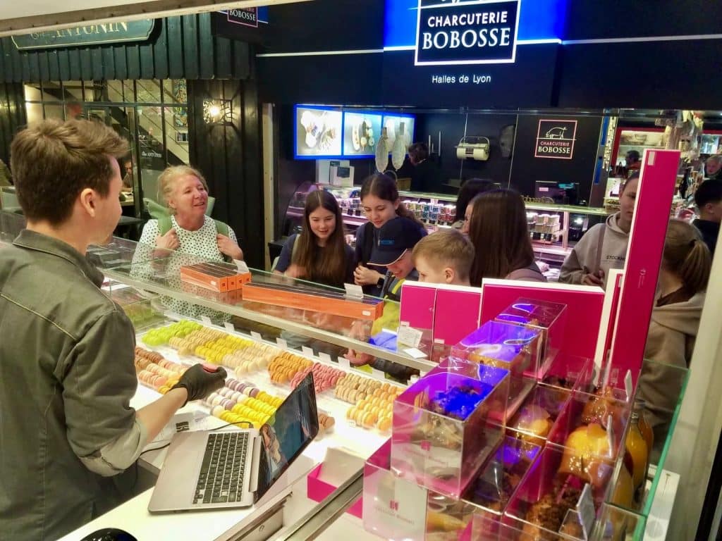 Auf dem Weg zu den „Les Halles de Bocuse“ sind zwei Schüler in der Métro versehentlich sitzen geblieben – sie schafften es dann aber, wie die Profis die richtige Métro zurück und auch uns zu finden. In den Markthallen von Bocuse gab es verschiedenste Stände voll Spezialitäten: Käsesorten, Hummer, Macarons… Daraufhin sind wir mit der Zahnradbahn hoch auf einen der Hügel zur Kirche Notre-Dame de Fourvière gefahren.