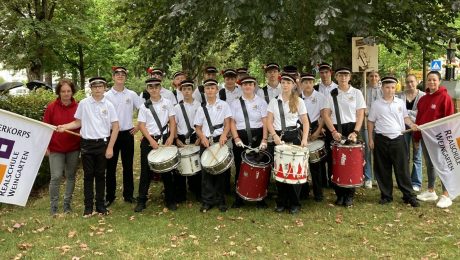 17 Schülerinnen und Schüler der Realschule trommelten während des Welfenfestes fünf Tage lang an 41 Adressen, begleitet von den Lehrerinnen Elke Sterk und Claudia Horne. Sie brachten Welfenfest-Stimmung zu den Firmen, Bildungspartnern, Geschäften in der Stadt und Privatadressen und sagen Danke für den Applaus und die Spenden für ihre lautstarke Darbietung. Ein großes Dankeschön geht an den seit Jahren besonders großzügigen Spender CHG und die weiteren Bildungspartner EP Elektronik, Kreisparkasse Weingarten, Schuster KG, Volksbank Weingarten. Das Geld wird dringend benötigt für die Wartung der Instrumente und für die Mützen für neue Mitglieder, denn dieses Jahr verlassen sieben Abschlussschüler die Truppe, für die Nachwuchs gesucht werden muss. Das Realschul-Trommlerkorps wurde vor 45 Jahren gegründet. Besonders war, dass vom ersten Tag an trommelnde Mädchen dazugehörten. Die Truppe tritt zwar auch unterjährig zu besonderen Anlässen auf, aber der Höhepunkt ist das Welfenfest. Von der Fahnenübergabe am Freitagabend bis zum Umzug am Montag sind die Musiker*innen unterwegs. Am Dienstag gibt es dann zum Abschluss des Welfenfestes auf dem Schulhof ein Trommelkonzert, bei dem sich die Trommler der Realschule und des Gymnasiums abwechseln. Nach dem Welfenfest können sich die Trommler erholen, bis sie die Schule an der Abschlussfeier und am Rutenfestumzug würdig vertreten.