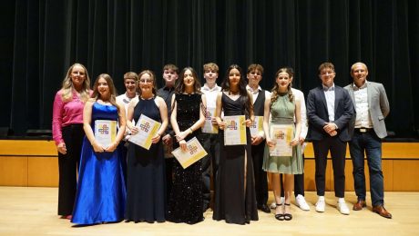 104 Schülerinnen und Schüler der Realschule Weingarten erhielten ihre Abschlusszeugnisse. Zwölf Schüler*innen erreichten den Hauptschulabschluss, 92 die Mittlere Reife. Julia Kesenheimer (10c) schaffte einen sagenhaften Durchschnitt von 1,0. Ein feierliches Programm, sicher moderiert von Batuhan und Aylenn (beide 10c), umrahmte die Redebeiträge und die Zeugnisübergabe. Traditionell eröffnete das Trommlerkorps den Abend inklusive eines Trommlerduells zweier scheidender Zehntklässler. Nach mehreren beschwingten Stücken des Schulorchesters, das sich von drei Musiker*innen trennen muss, tanzten, musizierten oder performten die einzelnen Abschlussklassen gekonnt und unterhaltsam, amüsant und emotional. Schmunzelnd verglichen die Schülersprecher Luca Pascher und Anes Qullumi die Schulzeit mit dem Schul-WLan: lange unzuverlässig, oft überfordert, aber am Ende hat es doch gereicht. Rektorin Melita Paul betonte, wie wichtig es sei, den Verstand zu trainieren– trotz oder gerade wegen der KI: bedürfe sie doch der kritischen Urteilskraft, um nicht fremdbestimmt zu leben. Preise zwischen 30 und 100€ für die Fach- und Jahrgangsbesten überreichte Philipp Wirth vom Bildungspartner Volksbank Bodensee-Oberschwaben. Schule ist mehr als Unterricht, was sich bei den zahlreichen Sonderpreisen für langjähriges Engagement bei den Schulsanis, in der Schülerbücherei, in der Theater-AG, im Jugendgemeinderat, in der SMV, im Trommlerkorps oder im Schulorchester zeigte. Ein wenig Wehmut war zu spüren, als Rektorin Paul die Schüler*innen entließ in den Status „Ehemalige“.