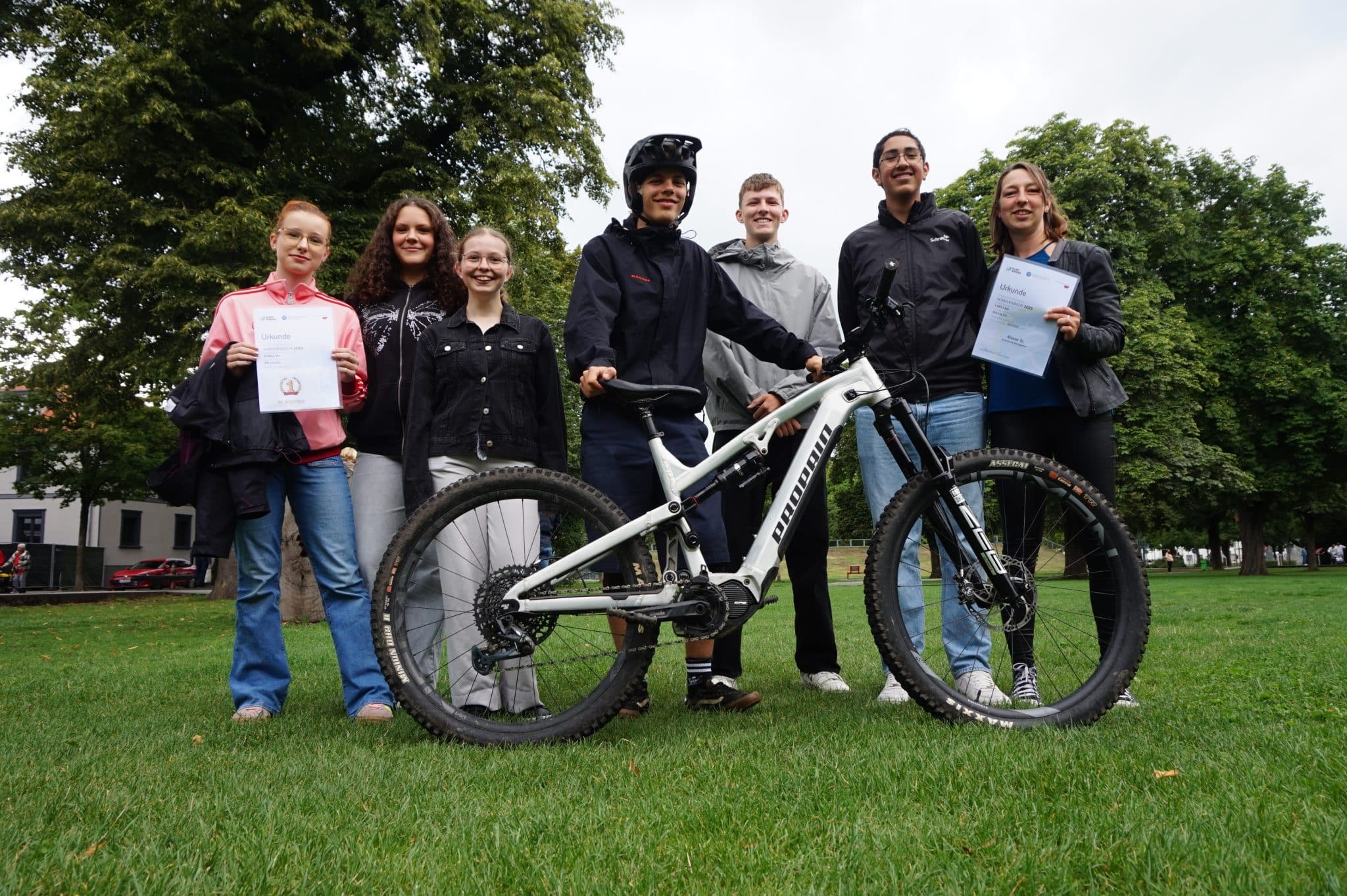 Insgesamt 10731 Kilometer radelte das Stadtradeln-Team der Realschule Weingarten innerhalb von drei Wochen und landete damit bei der Stadtradeln Aktion der Stadt Weingarten auf dem zweiten Platz, vor der Schule am Martinsberg und dem Gymnasium Weingarten. Lehrerin Nadja Storz hatte mit der Werbung für die Aktion 62 Radler*innen für das Team der Realschule motivieren können. Dabei handelte es sich explizit nur um Schüler*innen und Lehrkräfte, ohne Eltern. Im Stadtgarten nahmen einige Schüler*innen und Nadja Storz stellvertretend für die Schule die Urkunde entgegen. Zweirad Schützbach und der Cube Store sponsorten Helme und Trinkflaschen als Sachpreise für die eifrigsten Radler der Realschule. Es gehe jedoch nicht um den Preis, sondern um den Klimaschutz, so Bürgermeister Alexander Geiger bei der Preisverleihung. Die Natur sei der Gewinner.  Allein die Klasse 9b mit den meisten Kilometern innerhalb der Schule konnte 499 kg CO2 einsparen. Die CO2 Ersparnis der Realschule lag insgesamt bei 1760 Kilogramm.