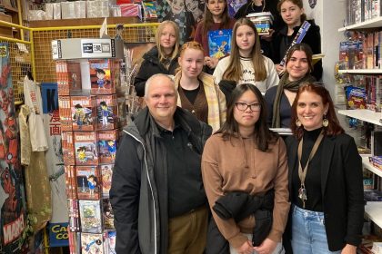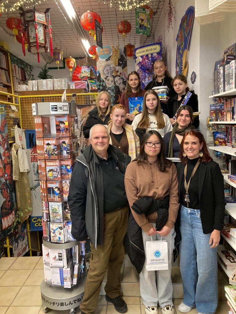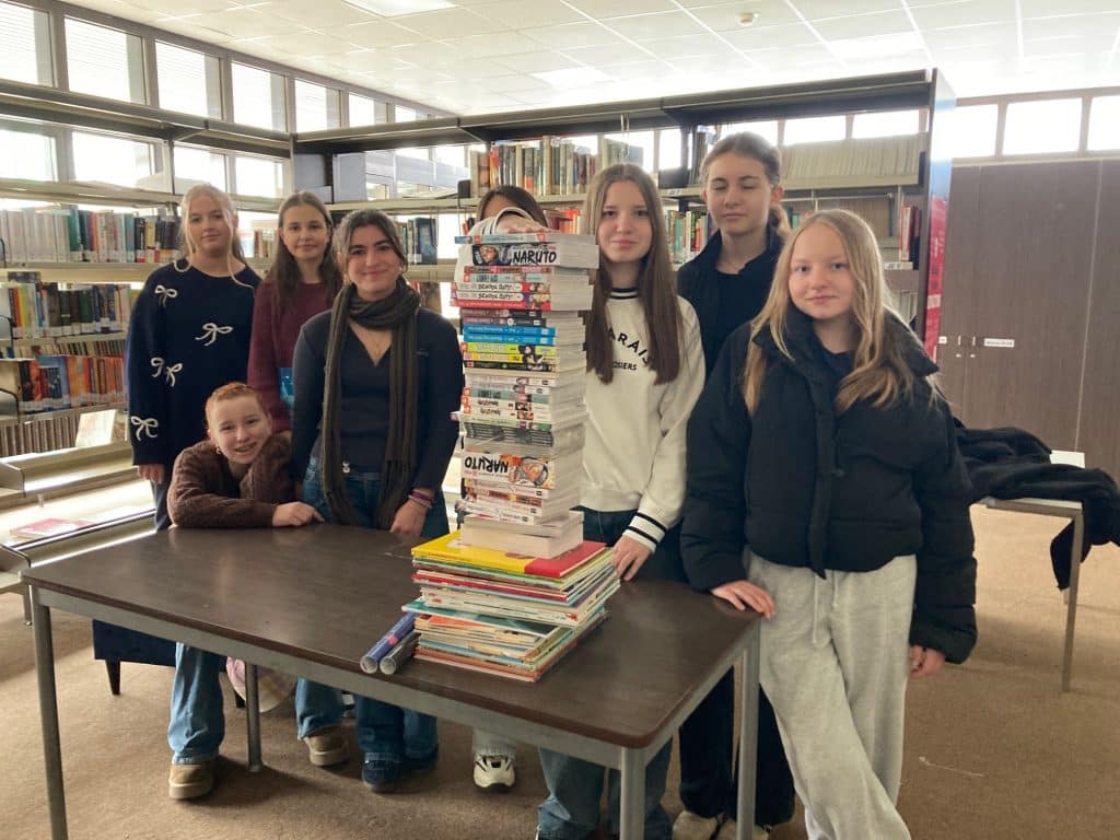 Dank einer äußerst großzügigen Spende des Fördervereins der Realschule Weingarten konnte das Bücherei-Team einen großen Stapel Bücher für die Schülerbücherei der Realschule einkaufen. Mit Reiner Martin, dem Vorsitzenden des Fördervereins, trafen sich einige Schülerinnen des Bücherei-Teams und Lehrerin Tanja Neidhart in Ravensburg in der Comic Buchhandlung Persiflage. Der Betrag von 500 Euro ermöglichte den Kauf einer stattlichen Anzahl Comics und Mangas. Für die Schülerinnen und die Lehrerin war es ein besonderes Erlebnis, aus der Vielfalt des Ladens auswählen zu dürfen, was das Interesse der jugendlichen Leser trifft. Die Spende legte den Grundstein für eine Comicsammlung. Endlich kann dieses Genre in der Schülerbücherei angeboten werden. Möglicherweise können mit Comics und Mangas neue Stammleser*innen gewonnen werden oder Jugendliche Zugang zum Lesen finden, die selten ein Buch in die Hand nehmen. Der Förderverein der Realschule Weingarten unterstützt die Schüler*innen auf vielfältige Weise, z.B. mit einer jährlichen Auslobung für besonders engagierte Schüler*innen und einer Spende für eine AG der Schule, mit der Finanzierung des Schulobstprogramms oder einem Beitrag für jeden Käufer des Schulplaners. Mehr Infos auf www.realschule-weingarten.de
